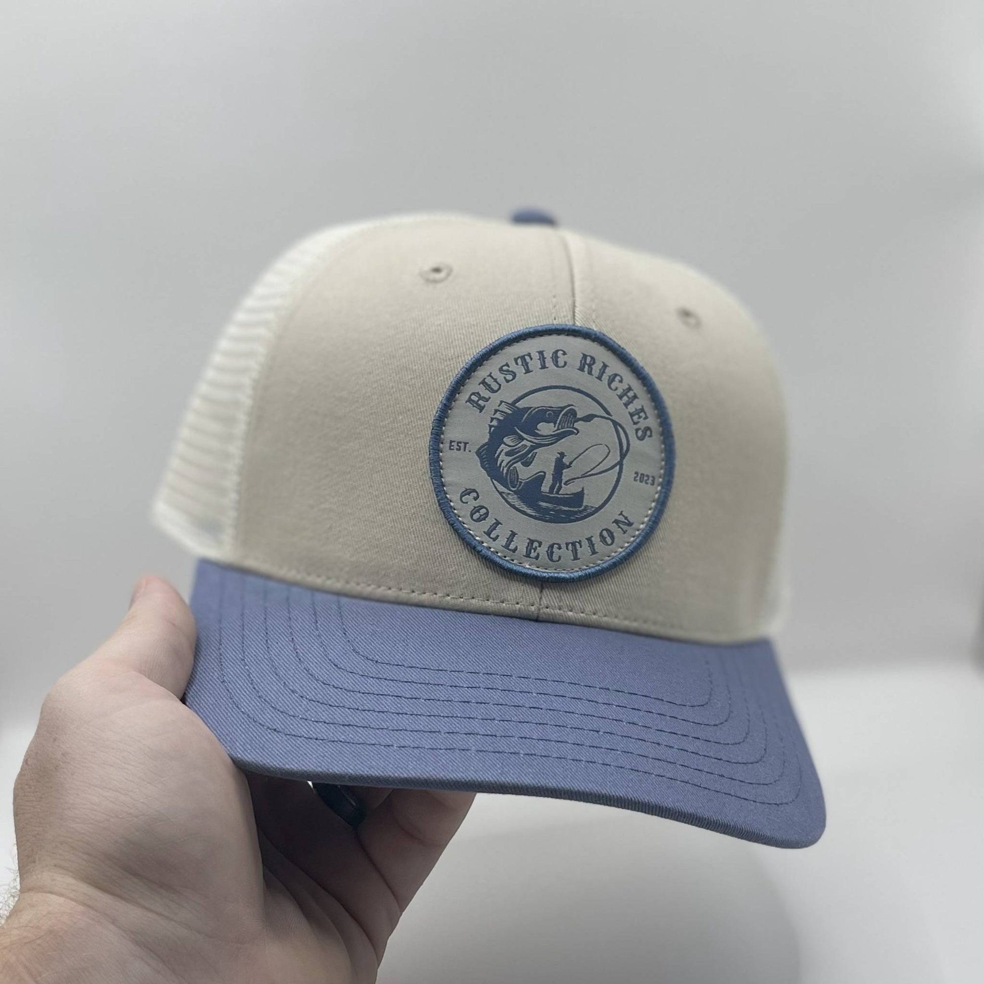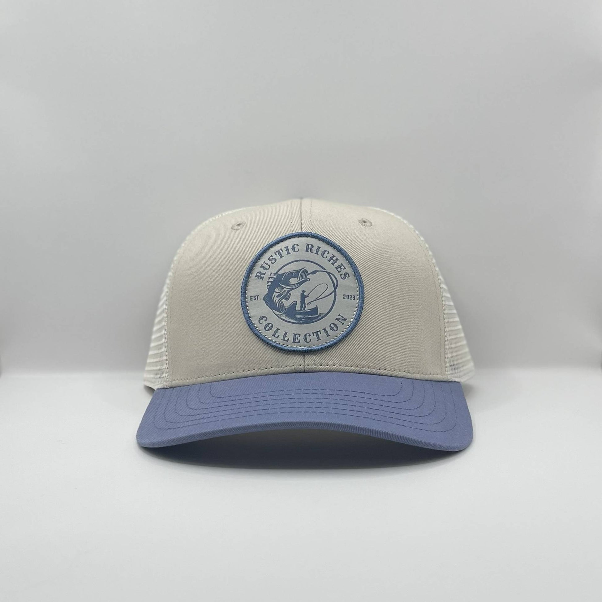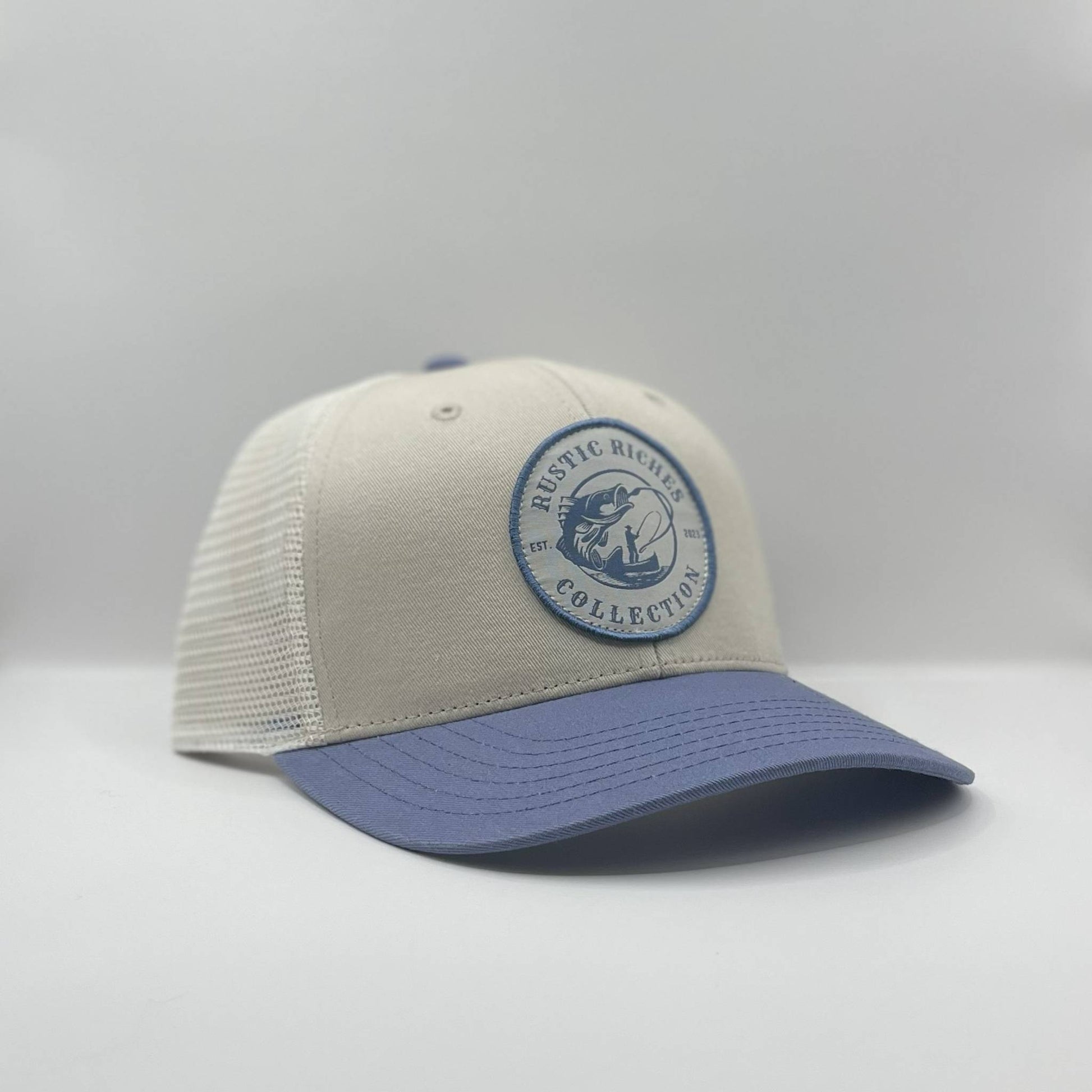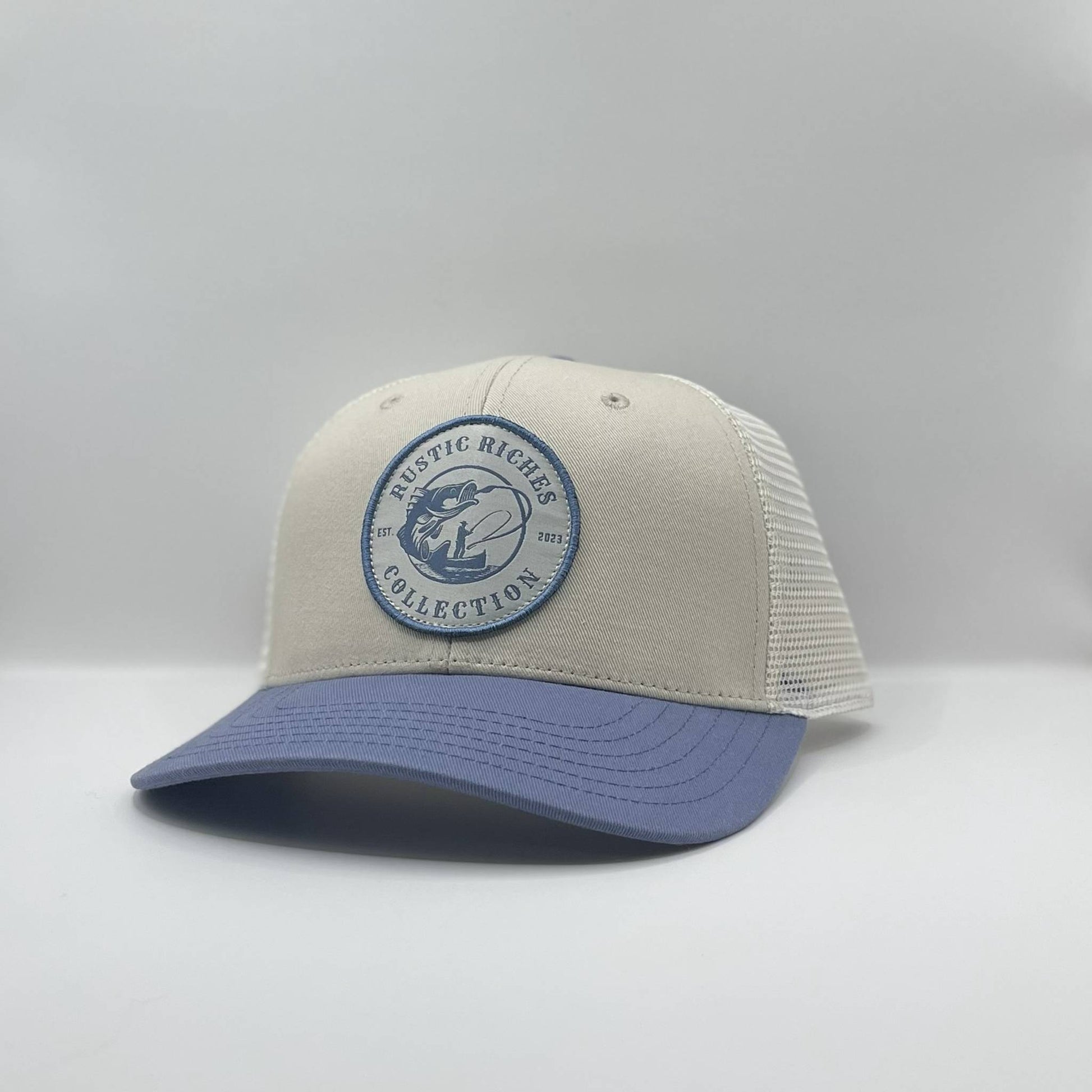 - Stone Colored Cotton Material With Cobalt Blue Visor And Stone Colored Mesh Back
