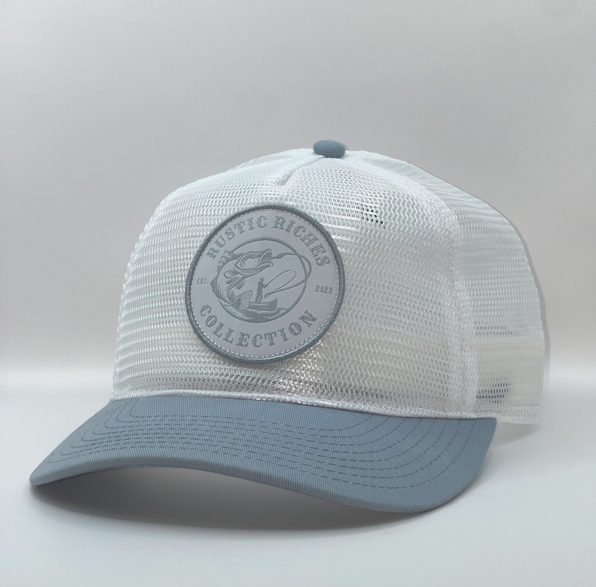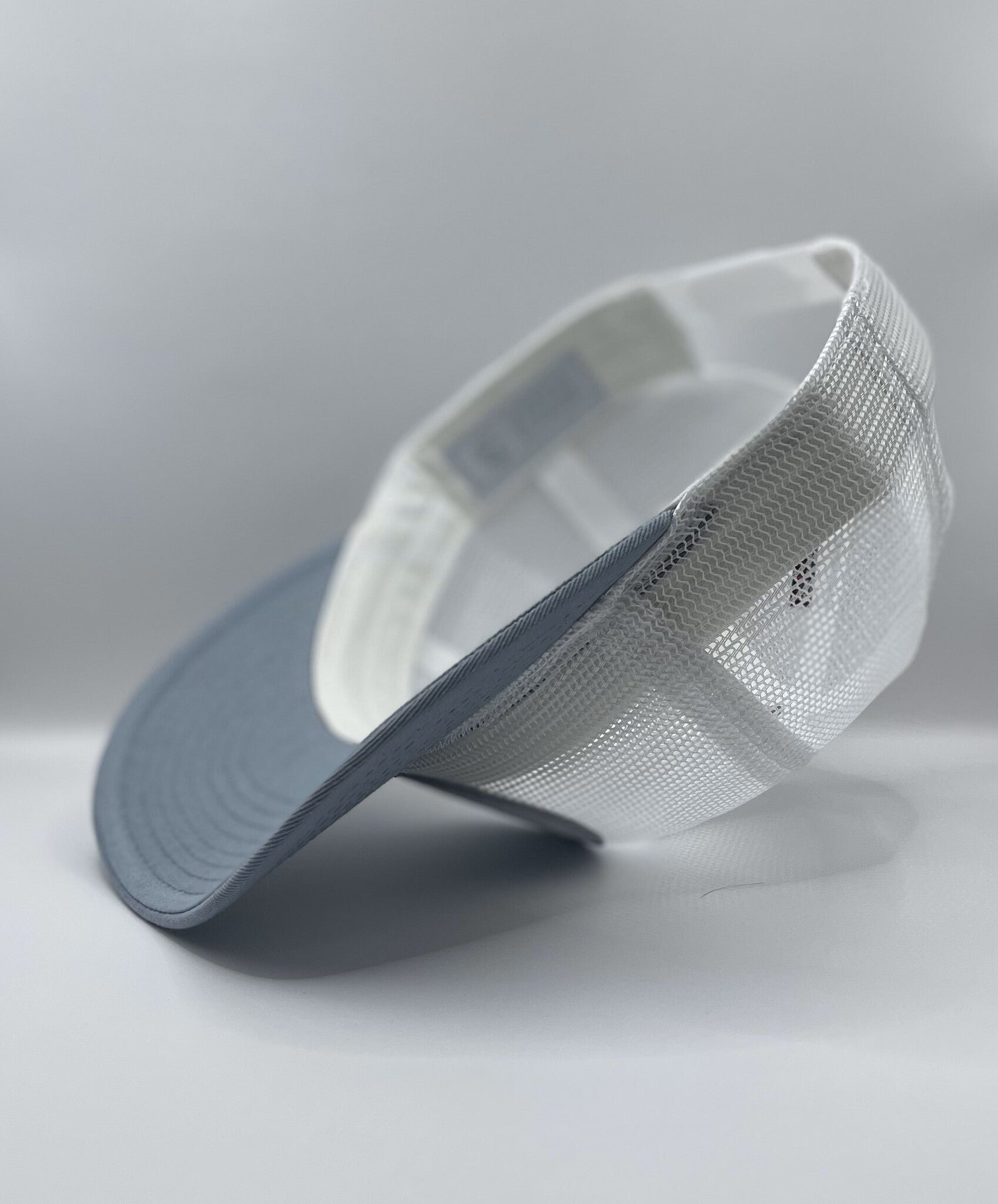- White Full Mesh material with Light blue visor