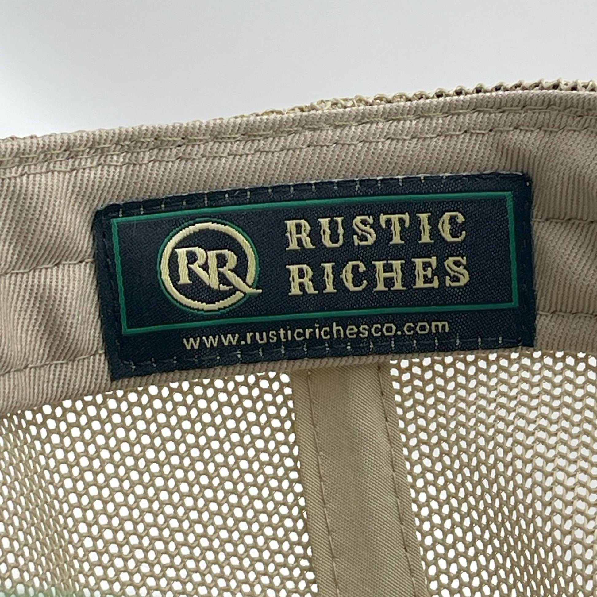 - Mossy Oak "Blades" Cotton Material With Khaki colored Mesh Backing